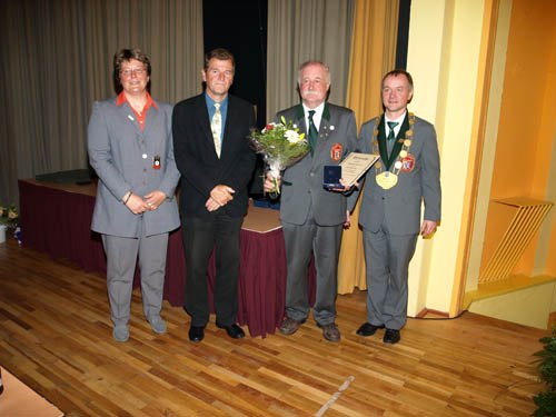 | Anlässlich des 7. Stadtsporttag des Stadtsportbund Gera am 03.03. wurde unser Schützenbruder und 1. Vorstand Hartmut Straass, von P. Gösel (Präsident des LSB Thüringen) für seine Leistungen im Verein und im Verband, mit der Ehrennadel des Landessportbund Thüringen ausgezeichnet. Wir gratulieren ihm dazu recht