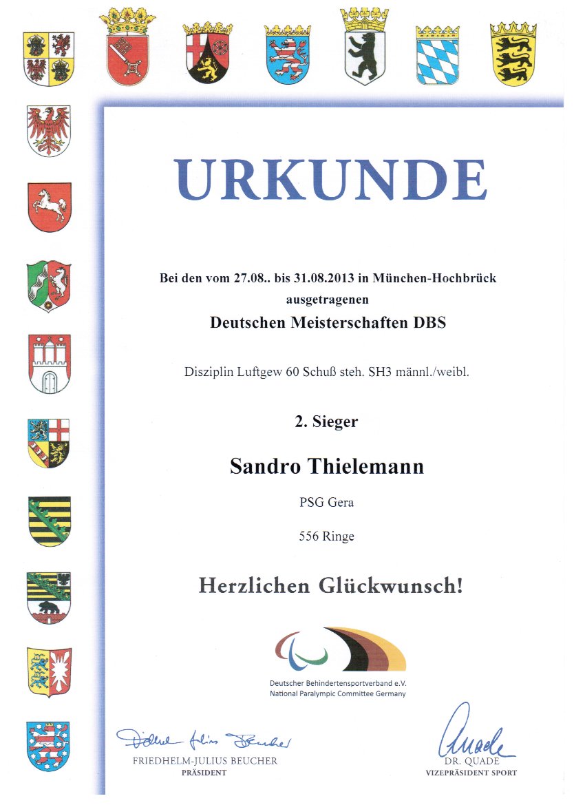 Schützen Sandro Thielemann zum Deutschen Vize-Meister DBS 2013