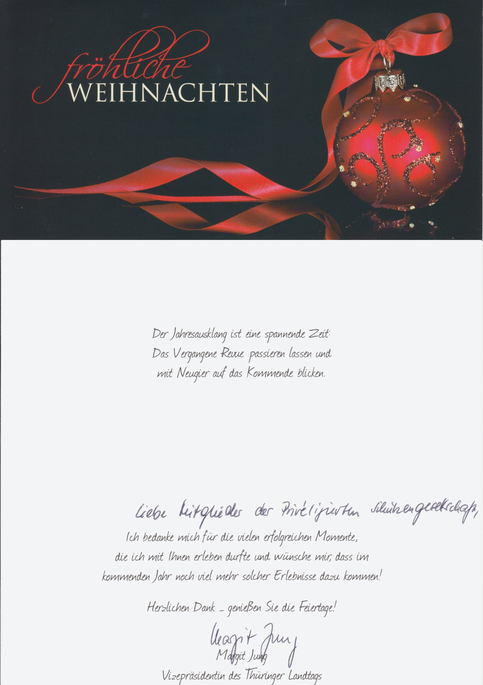 Auch die Vizepräsidentin des Thüringer Landtages Margit Jung (Die Linke.) übermittelt alles gute im neuen Jahr.